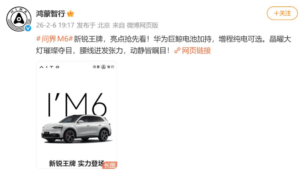 ▲鸿蒙智行发文介绍问界 M6